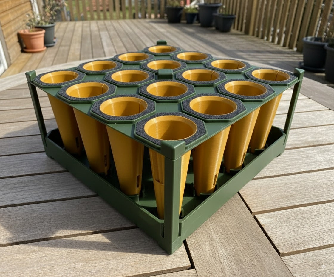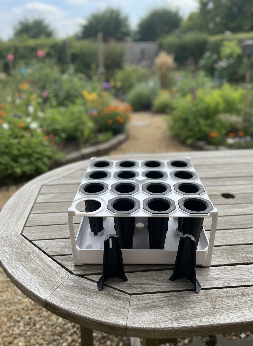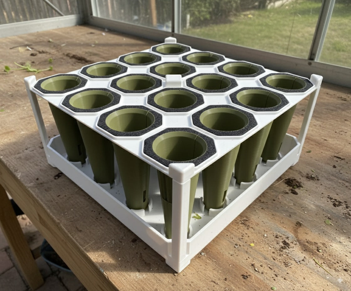 Incluye un germinador para 16 plantines con bandeja de autoriego: su diseño permite mantener la humedad ideal sin necesidad de estar vigilando a cada momento. Además, cada pod se divide en dos partes, lo que facilita el trasplante y protege las raíces, asegurando que tus plantas crezcan más fuertes y saludables.