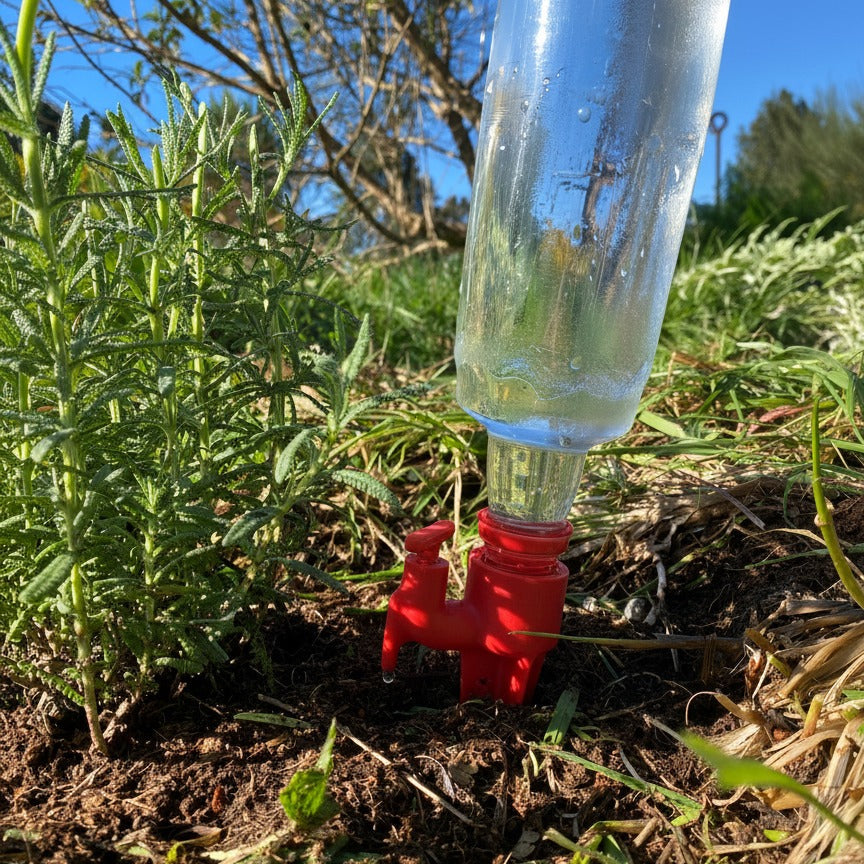 Estos regadores por goteo son compatibles botellas PET de 500cc, 1500cc y 2500cc, ideales para un riego controlado y eficiente, para cuidar de tus plantas sin complicaciones.