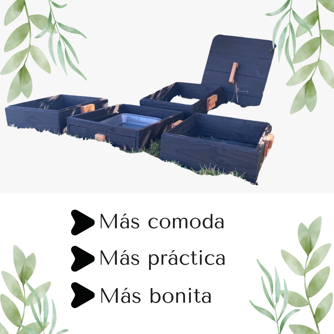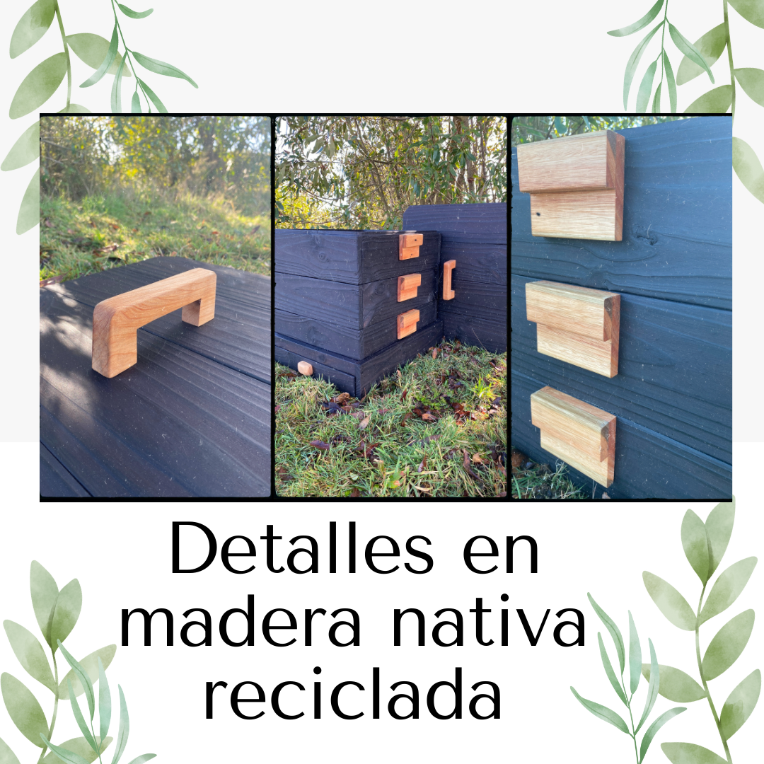- Los mangos laterales ayudan a un manejo fácil y cómodo, están fabricados de madera nativa reciclada